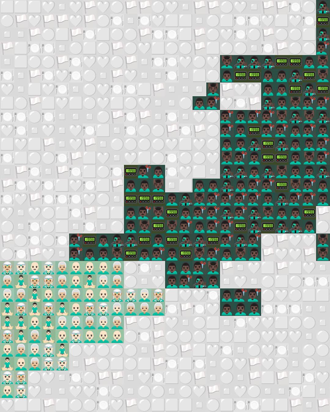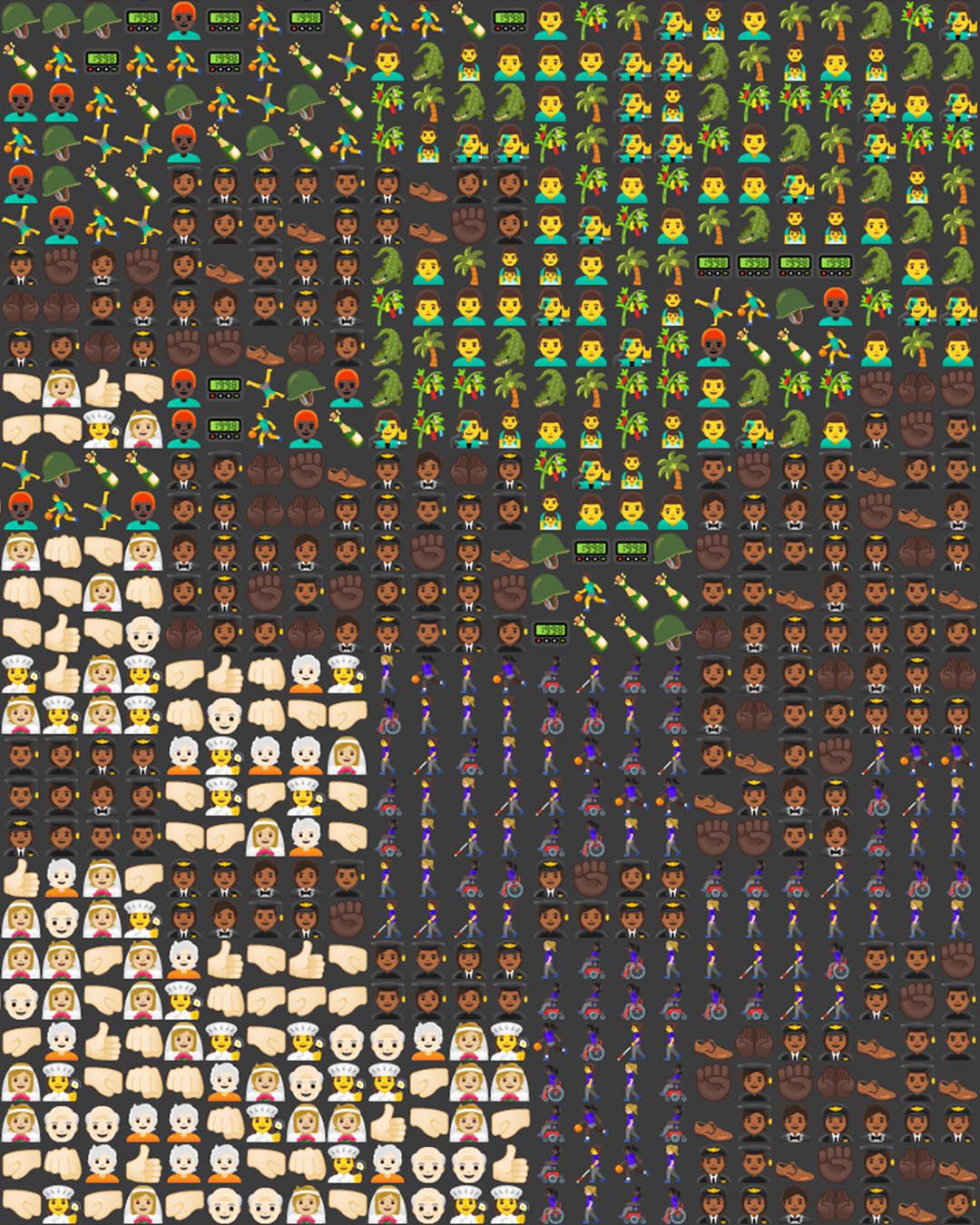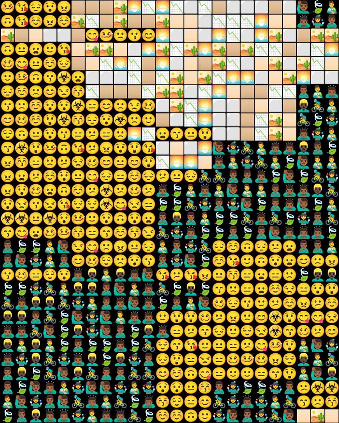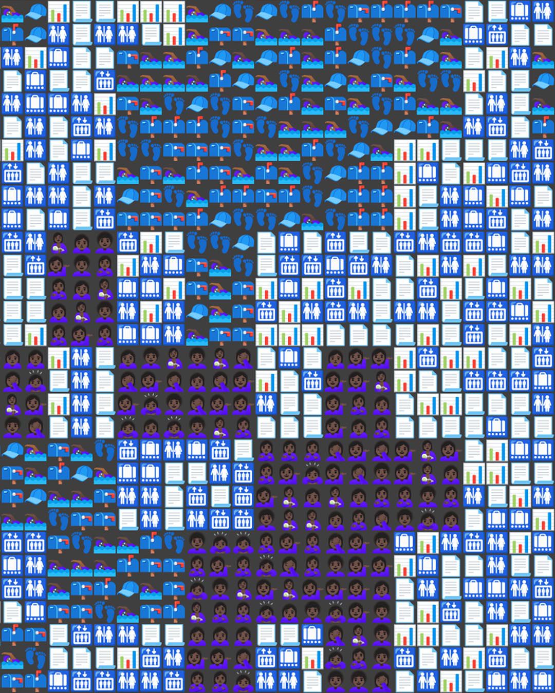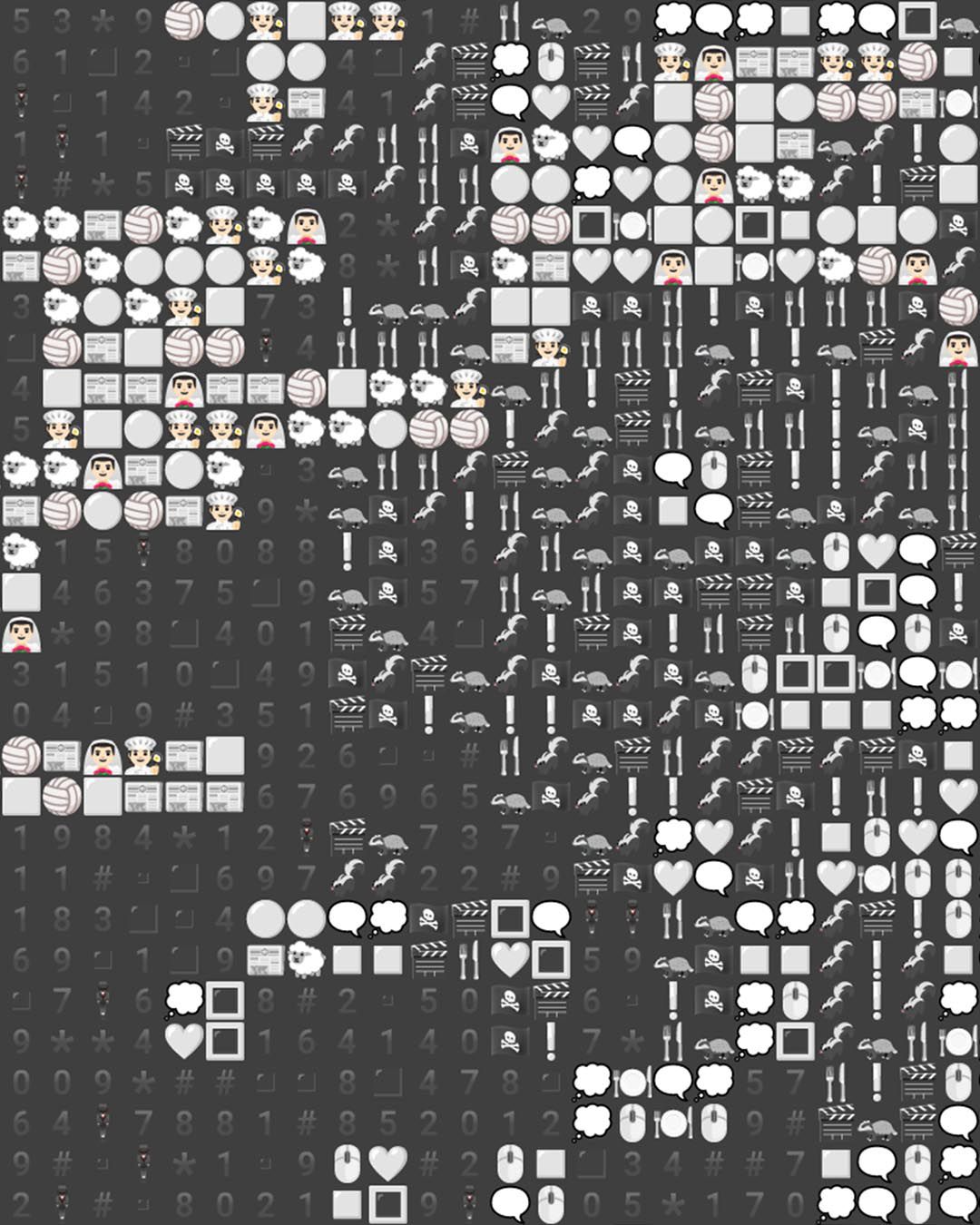 When the depicted patterns are printed on A1 sized posters, every emoji is about 4 mm wide and high, comparable to their actual sizes when used on a smartphone.