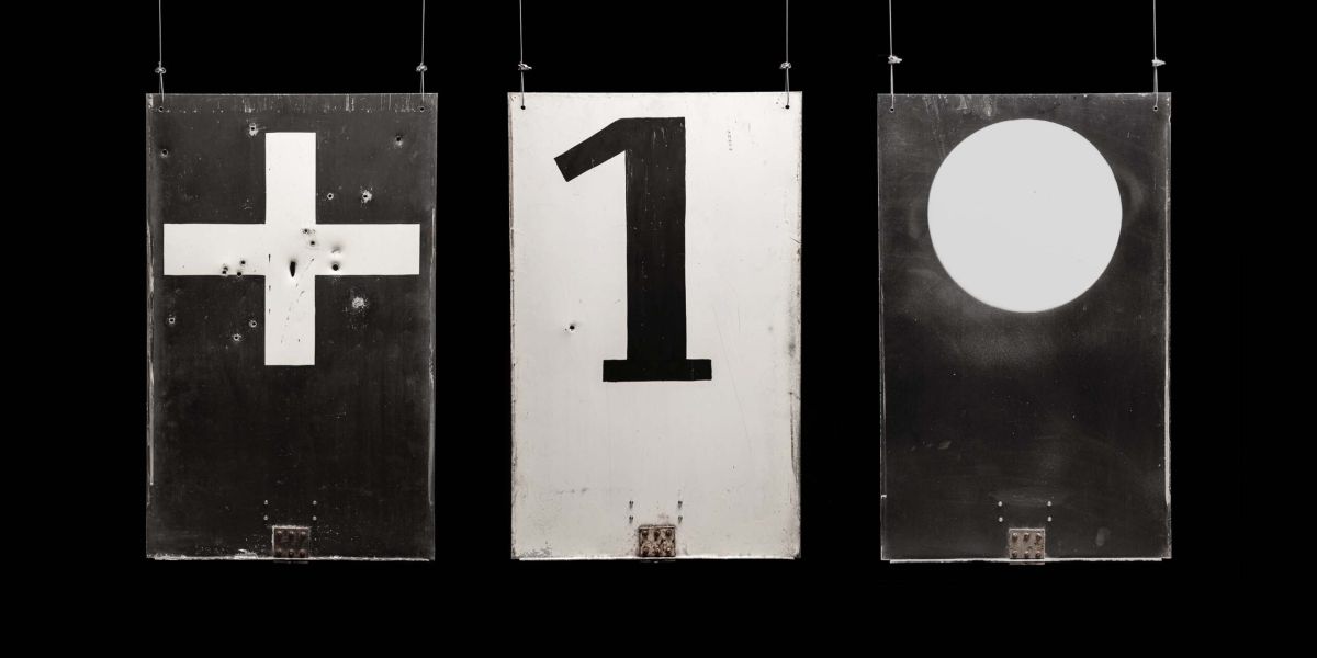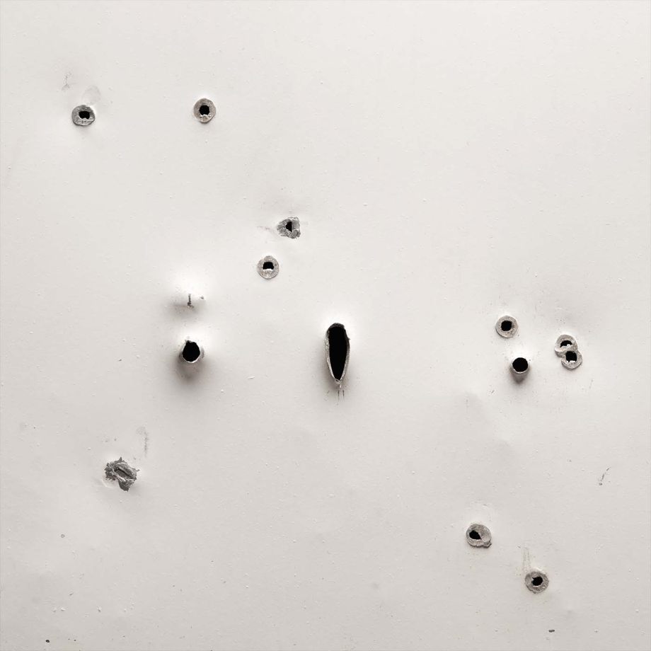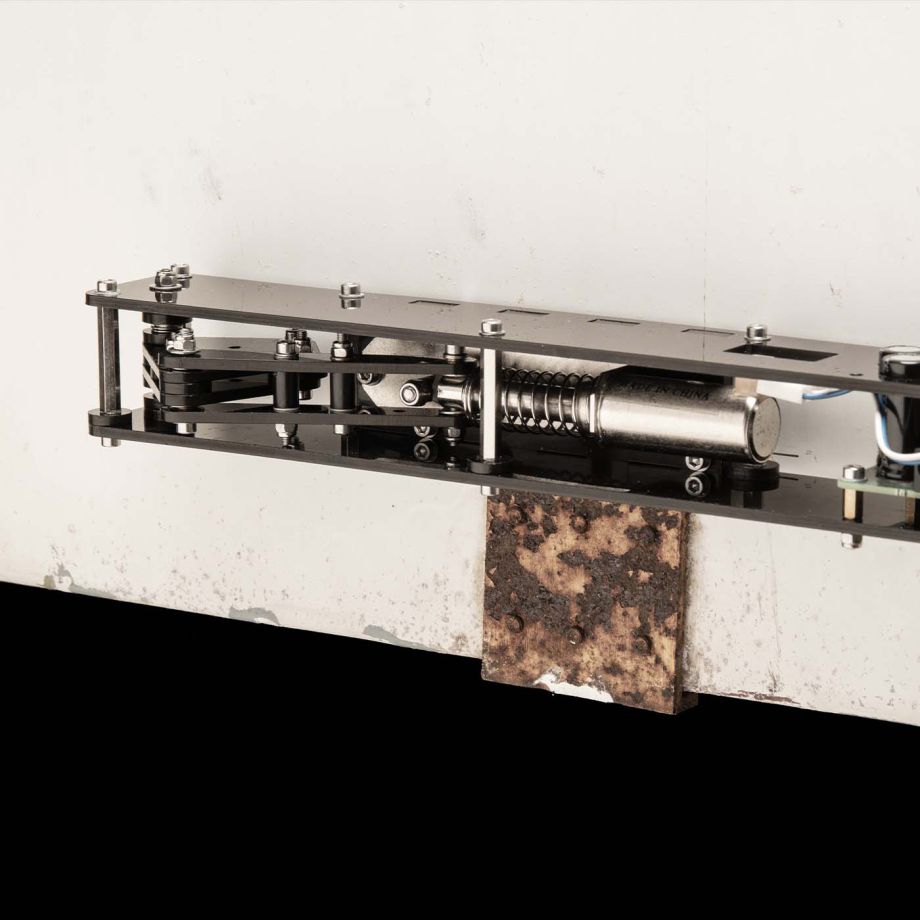Aluminium plates, various bullet residue, custom plastic components, custom electronics, solenoids. 60 x 100 cm each.