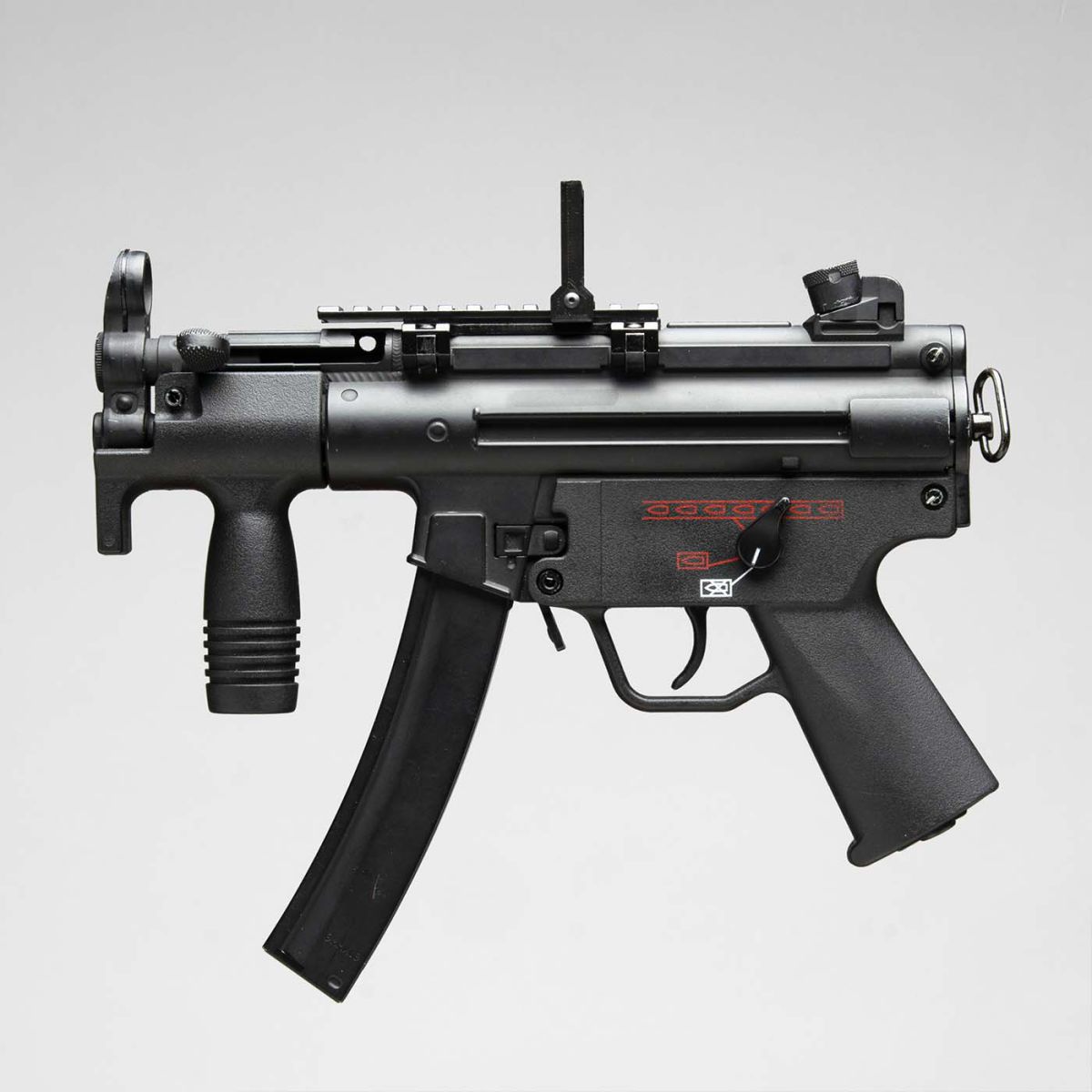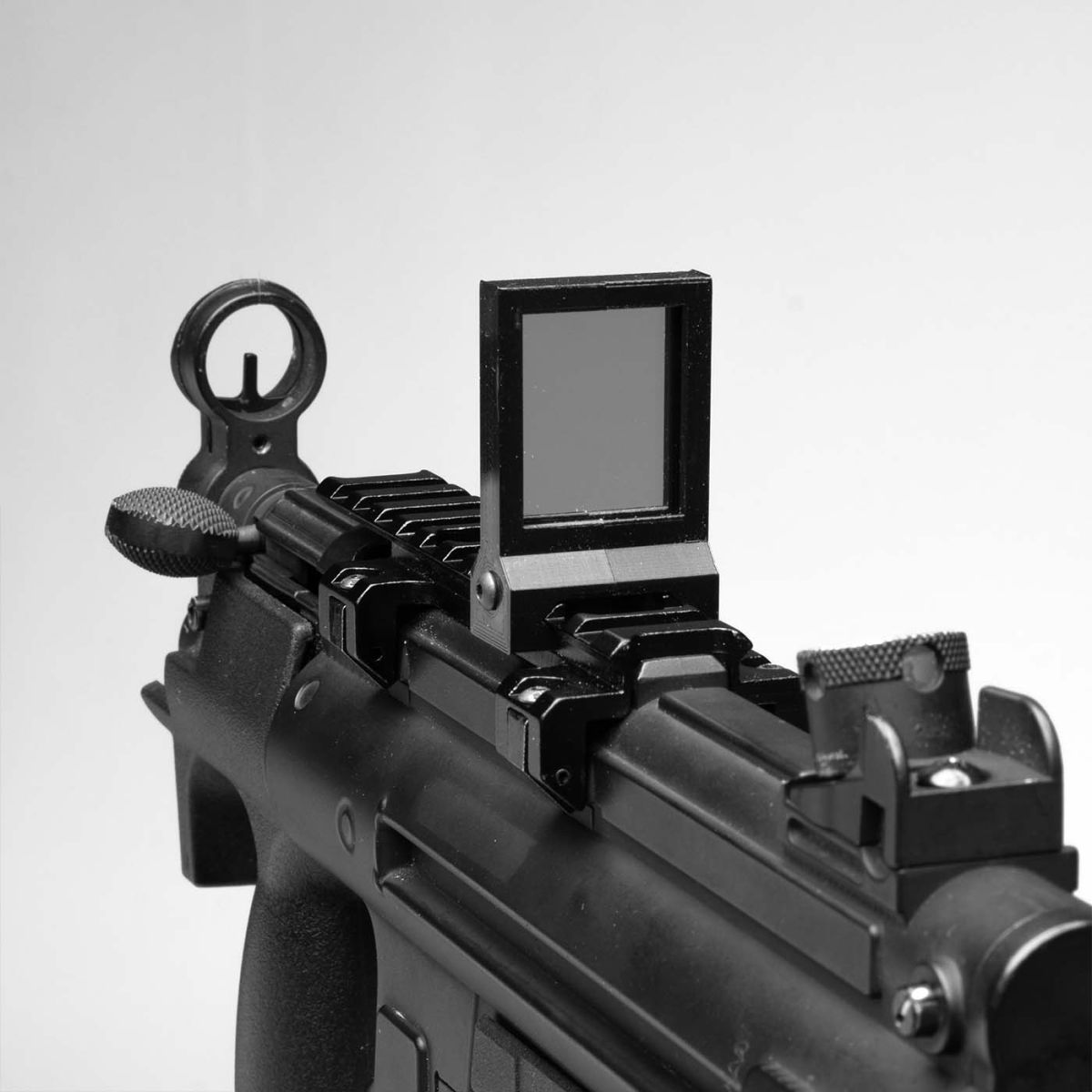 MP5K submachine gun with accessory rail, rail-mounted mirror. 2021, 37 x 30 x 5 cm.